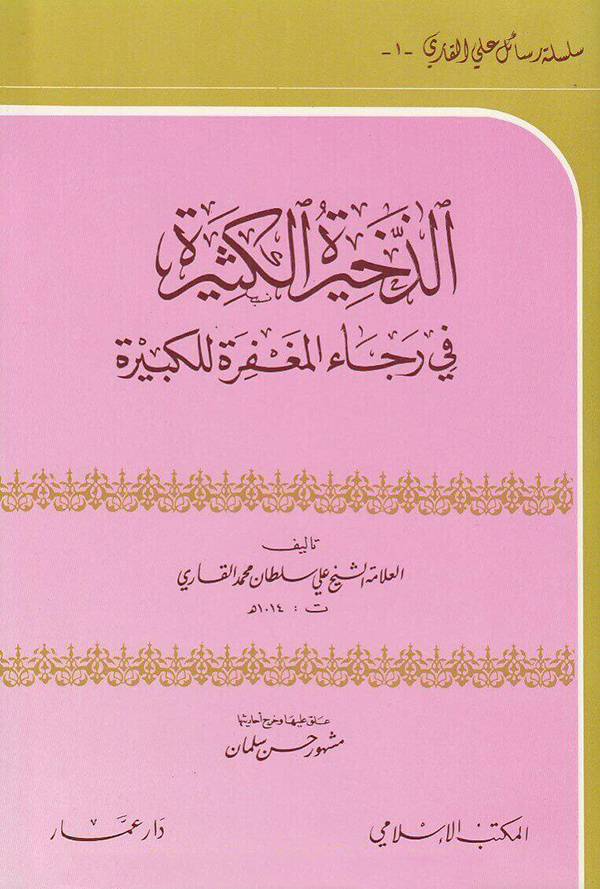ورسالتنا هذه "الذخيرة الكثيرة في رجاء المغفرة للكبيرة" هي الرسالة الأولى التي استهل بها المحقق "مشهور حسن سلمان" سلسلة من رسائل كثيرة مفيدة للشيخ العلامة المحقق "علي بن سلطان محمد القاري". وهدفه الكشف عن التراث الفكري والفقهي لهذا العلامة الجليل الذي لم تحظ كتبه بالعناية اللازمة لها من قبل المحققين. أما عمله في تحقيق الرسالة فتجلى بـ: التعليق عليها، وتخريج أحاديثها المتعددة.