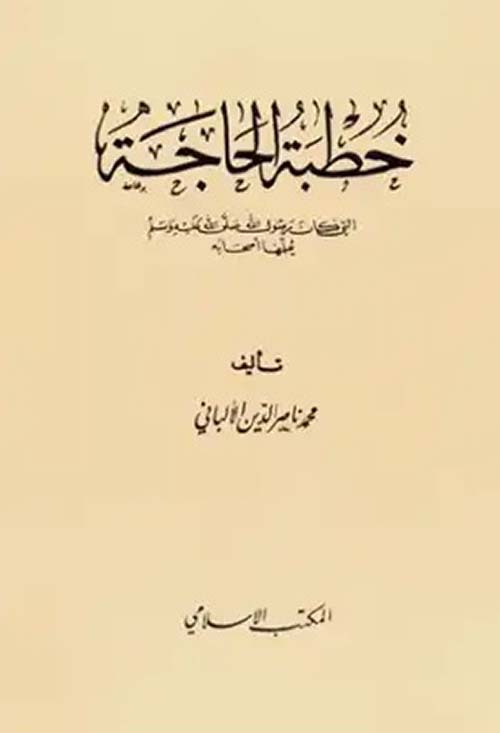 "خطبة الحاجة" هي الخطبة التي كان رسول الله صلى الله عليه وسلم يعلمها لأصحابه، ويطلب منهم افتتاح جميع خطبهم بها، سواء أكانت خطبة نكاح أو خطبة جمعة، أو غيرها، و"محمد ناصر الدين الألباني" يجمعها في هذا الكتاب مخرجة بهدف نشر هذه السنة بين الناس الذين كادوا أن يطبقوا على تركها، ولفت أنظار الخطباء والوعاظ والمدرسين وغيرهم إلى ضرورة حفظهم لها، وافتتاحهم خطبهم ومقالاتهم ودروسهم لها، عسى الله تعالى أن يحقق أغراضهم بسببها.
